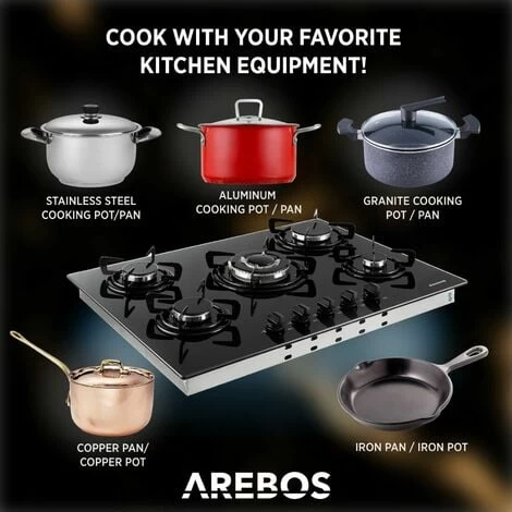 [DURABILITY] The AREBOS gas stove is made of polished safety glass with frosted enamel brackets that are characterized by non-corroding, safe and non-toxic features. They are easy to clean and removable and impress with utmost stability and high resistance to temperature.