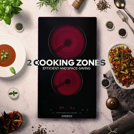 [MULTI-FUNCTIONAL] The AREBOS glass ceramic hob with 2 cooking zones is the perfect device for cooking. The built-in timer of 1-99 minutes makes cooking easy and enjoyable. On top of that, the AR-HE-GK2N has other features such as a residual heat indicator and a child lock function.