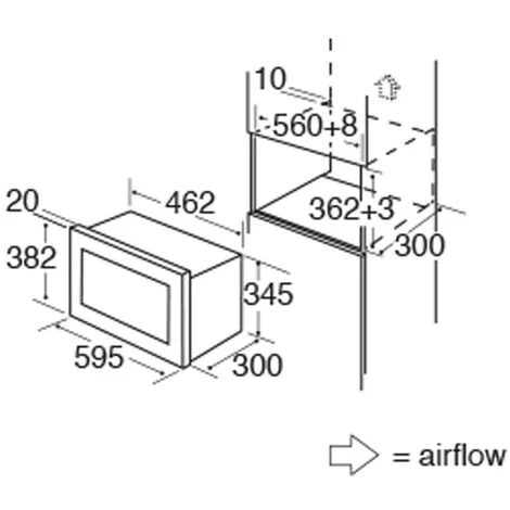 Overall product dimensions (mm): W595 x D320 x H382 (with fascia)