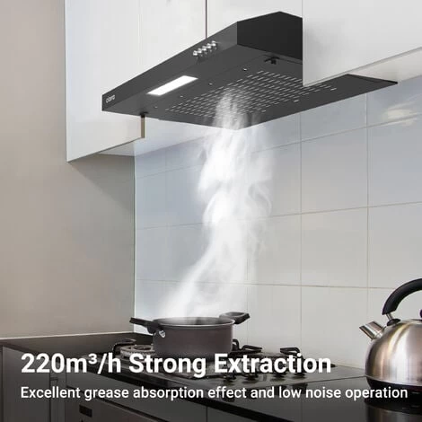 -With an extraction rate of 220m³/h, well enough to absorb grease, dust, and smoke during your cooking hours.