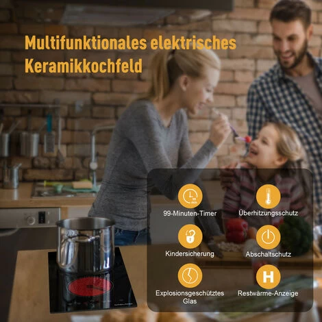 A temperature sensor monitors the temperature inside the ceramic hob. If an excessive temperature is monitored, operation stops.
