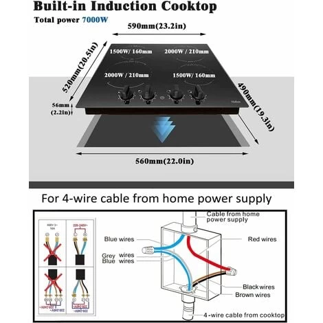 - ????【Built-in Induction Hob 60 cm】The induction cooker adopts a built-in design, convenient for you to install and saves your kitchen space. Product Size (W*D*H):59*52*5.6cm Built-in Size(W*D):56*49cm, Hard Wired, without Plug(Please confirm the size before buying)
