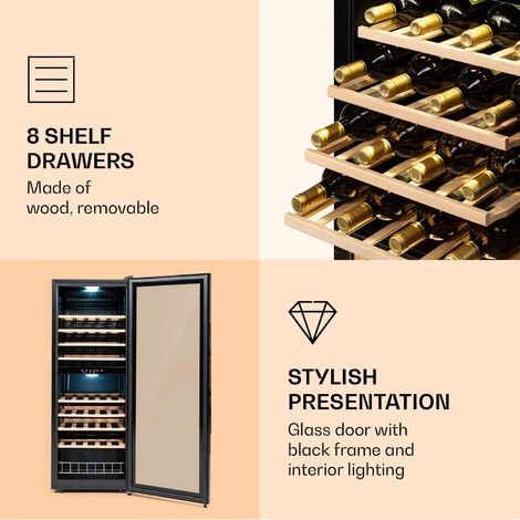 SILENT FOR ADDED AMBIENCE: Thanks to a quiet motor and an elegant visual design, our wine and beer fridge with glass door is ideal for wine storage in your own home as well as in bars, restaurants, tasting rooms or wherever wine connoisseurs gather.