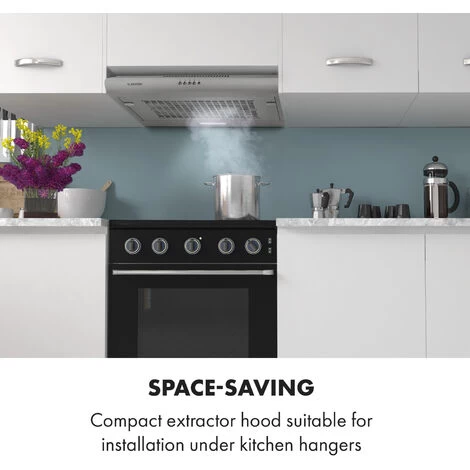 The compact one for the small hut: the Klarstein Capannina extractor hood ensures clean air in the kitchen, free of steam and odours, even under limited space.
