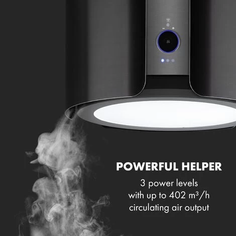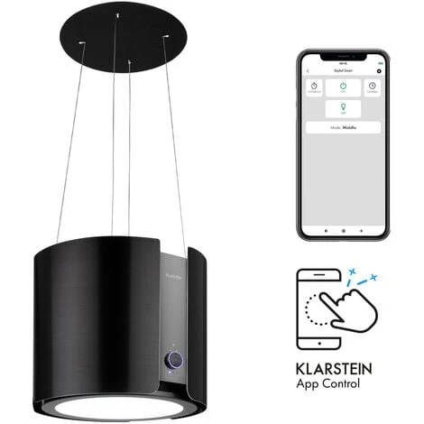 Klarstein Skyfall Smart, Island Extractor Hood, Ø45cm, Circulating Air, 402m³ / H, LED, Stainless Steel, Black