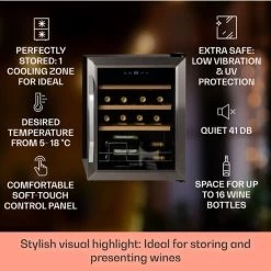 Klarstein Vinamour 46 Uno Wine Refrigerator 1 Zone 155 L/46 Fl. 4-18 °C Stainless Steel